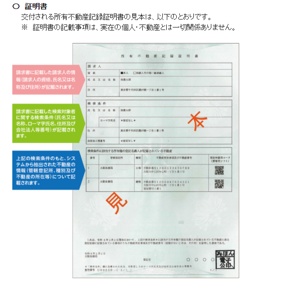 - 交付:対象不動産が一覧化され、証明書として交付されます。