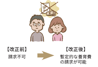 法定養育費のイメージ 改正前は請求不可 改正後は暫定的な養育費の請求が可能